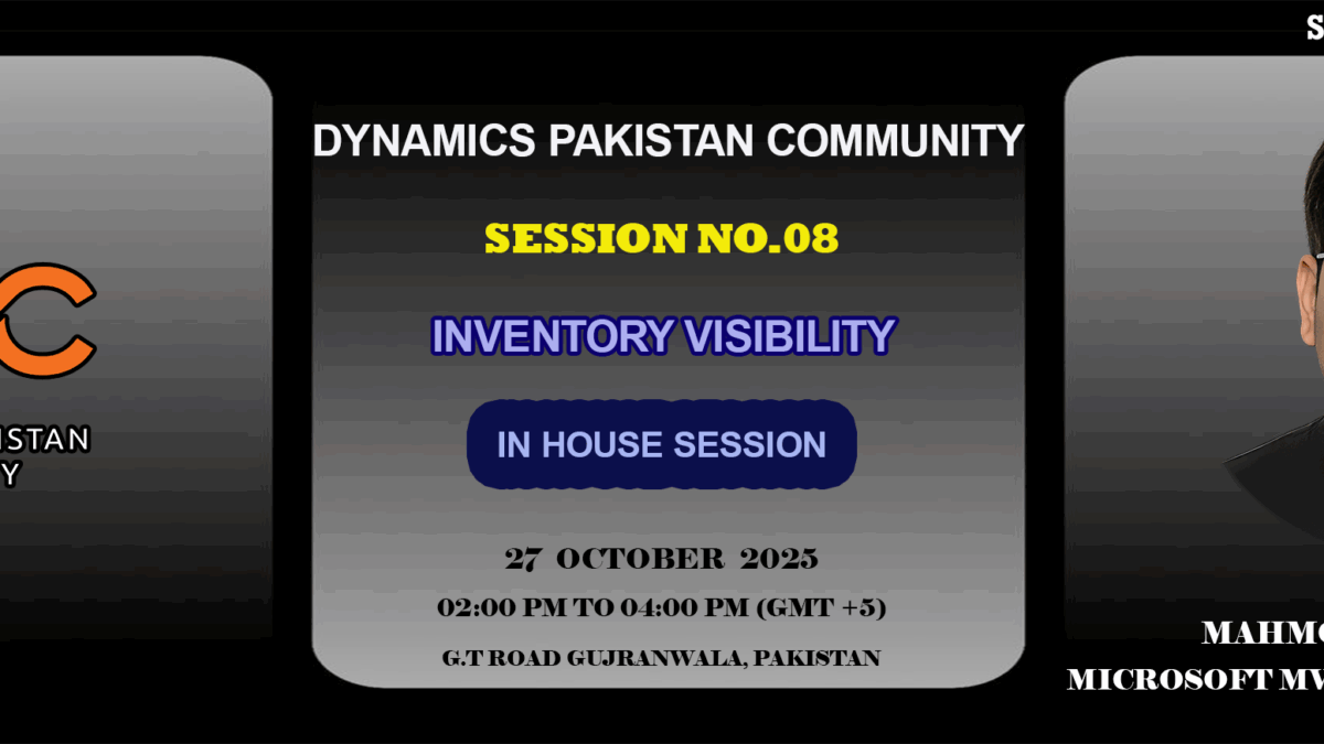 Join us for an in-house training session on Inventory Visibility Add-in from 2 PM to 4 PM at MOG, GT Road, Gujranwala. This hands-on session will explore how to achieve real-time inventory tracking, improve order accuracy, and enhance supply chain efficiency using Microsoft Dynamics 365’s latest Inventory Visibility capabilities. Perfect for consultants, functional leads, and supply chain professionals eager to optimize operations and master visibility across multiple channels.
