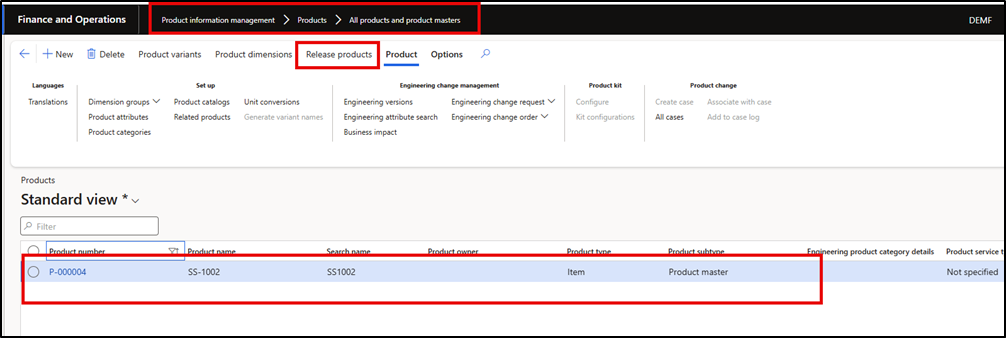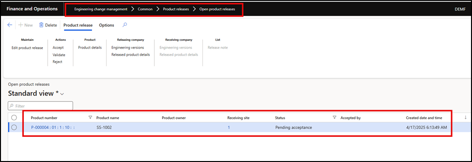 - User can notice that as well as we accept this item, this will not loner available on this “Open product releases form” Now this item is available on the release product under DEMF.