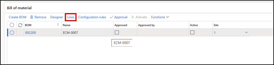 BOM Header will be created a mentioned below to add BOM lines click on the Lines.