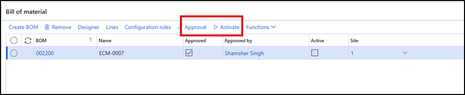 - Active the BOM version: – Once approved, mark the BOM version as active to make it available for use in production orders or planning.