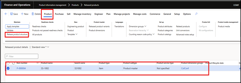 - Navigate to product Tab: – On the Product form click on the “Release product structure”