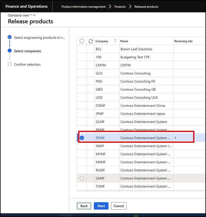 - Create a Master data Management Legal Entity: – Set up a new legal entity (E.g USMF) to function as the data management entity. This will serve as the control point for all ECM based versioned items.