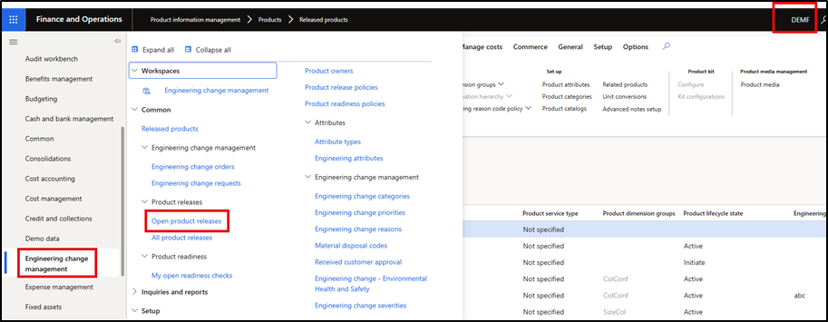 - Navigate to open product release: – Go to Engineering Change Management >Product Releases> Open product releases
