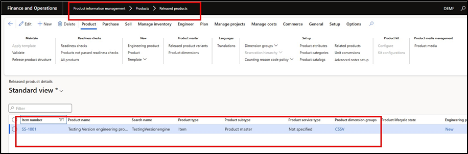 - Navigate to Released Products: – Go to Product information Management >Released Product and find the product which we have created with an engineering version.