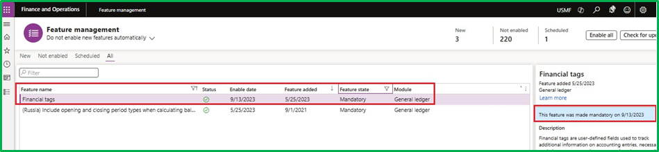 To set up financial tags, you must enable the “Financial tags” feature from Feature Management. As of September 13, 2023, this is a mandatory feature.