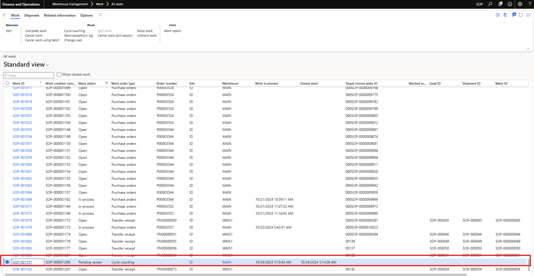 Step-1.       Navigate to “Warehouse management > Work > All work.”
