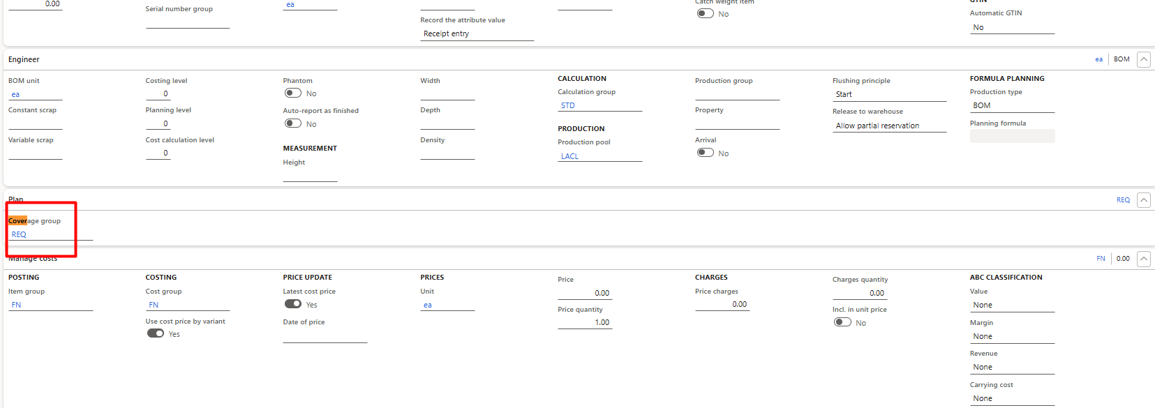 Once coverage groups and master plans are configured, coverage groups are assigned to items. Steps:
