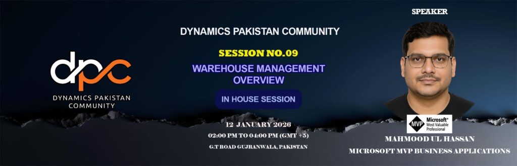 The Dynamics Pakistan Community proudly presents Session No. 09, an in-house learning session focused on Warehouse Management in Microsoft Dynamics 365.