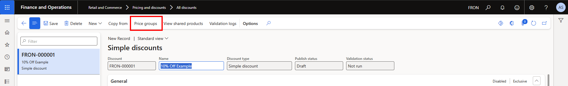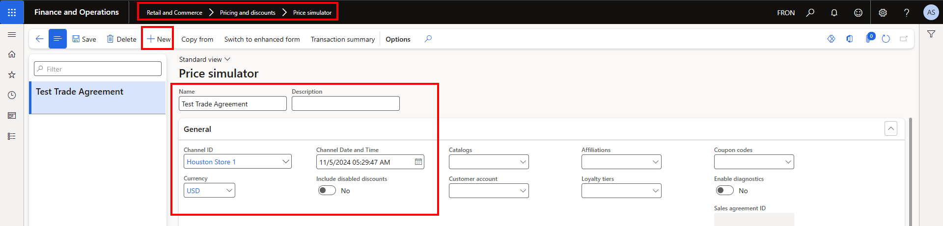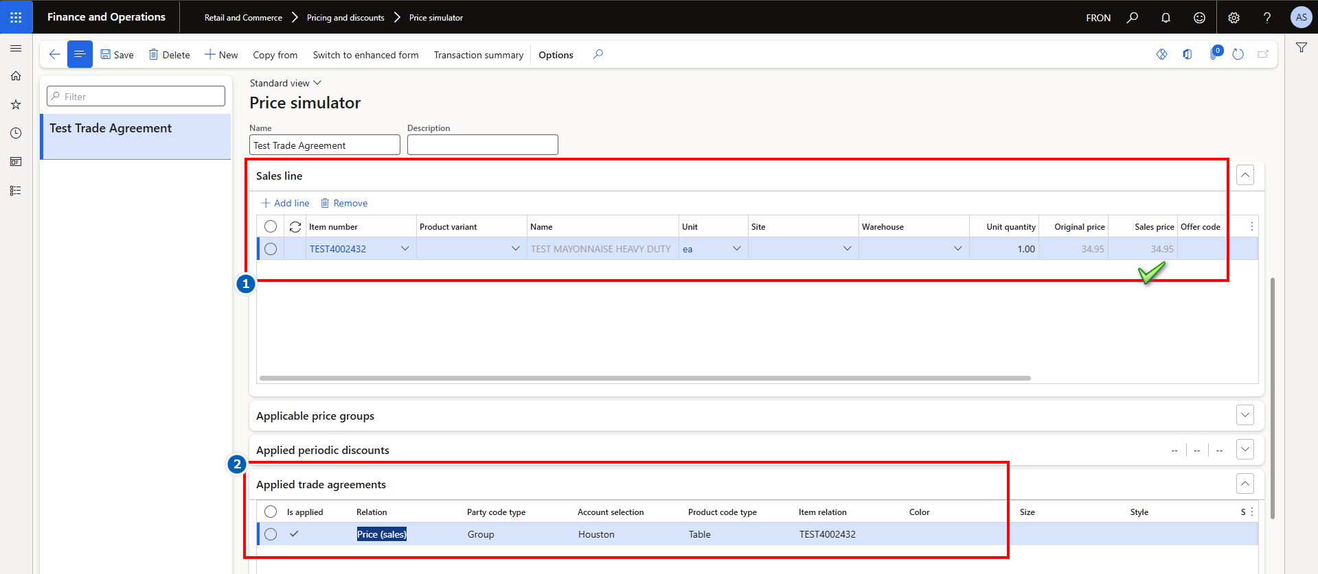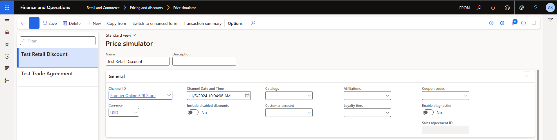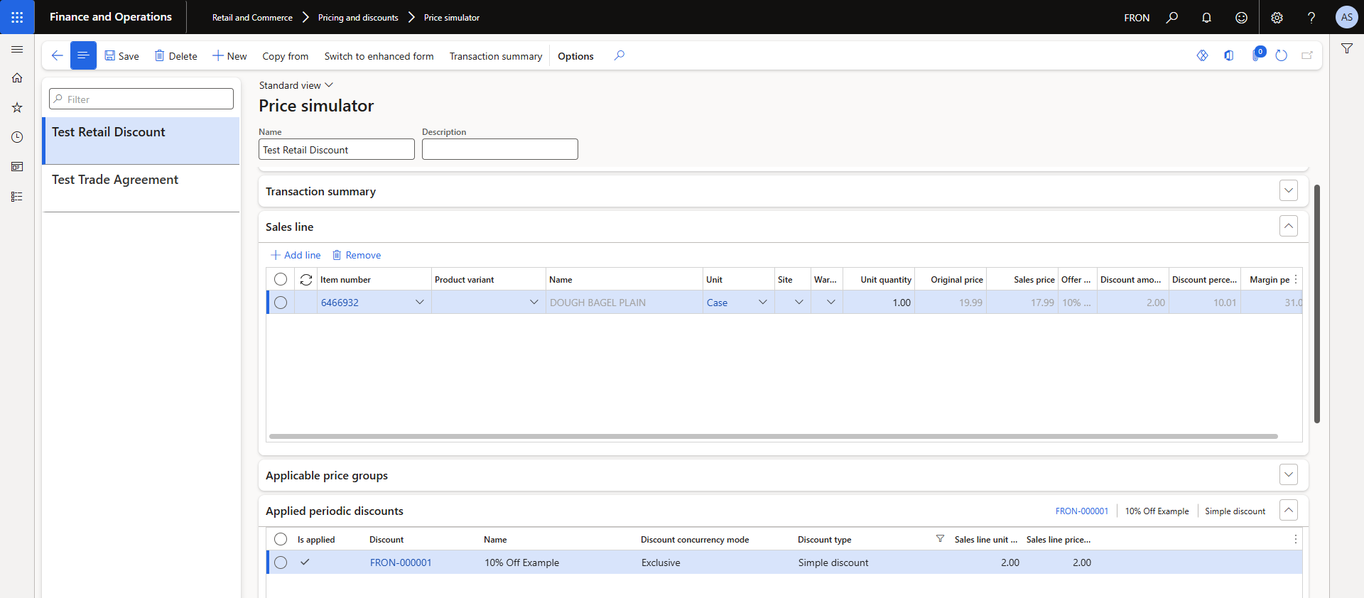 Just like trade agreements, retail discounts can be verified in the Price simulator form.