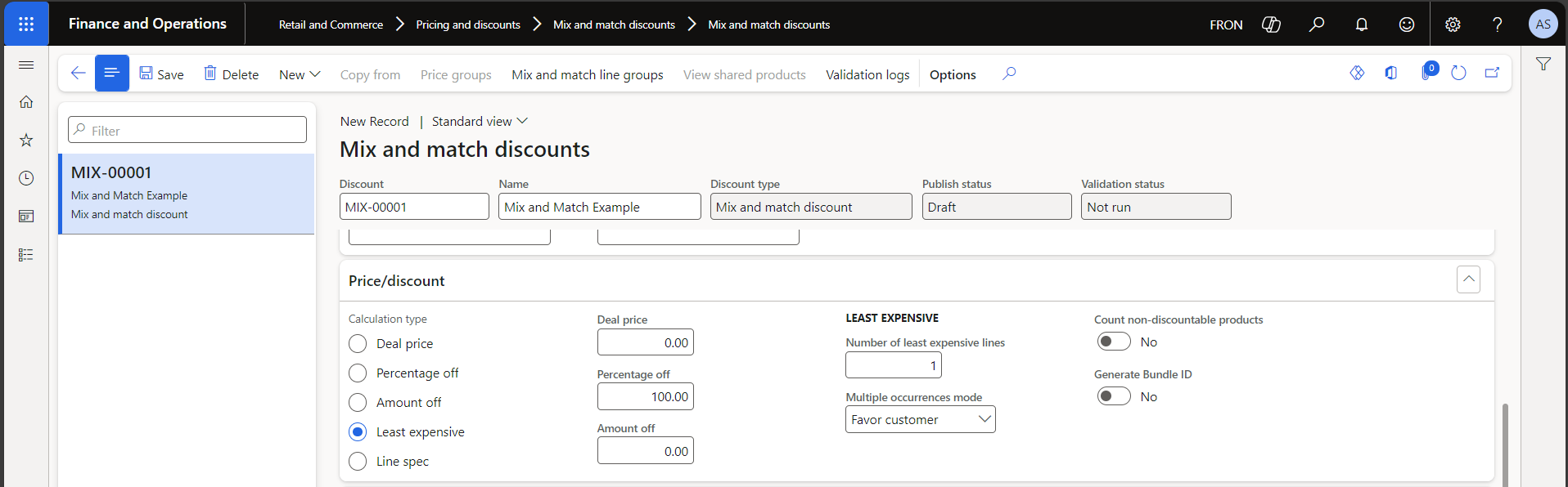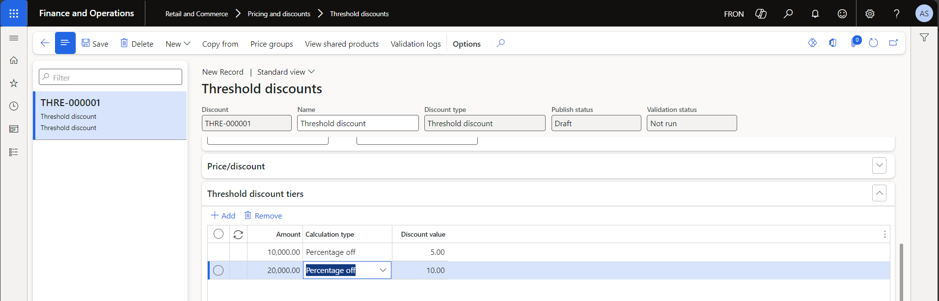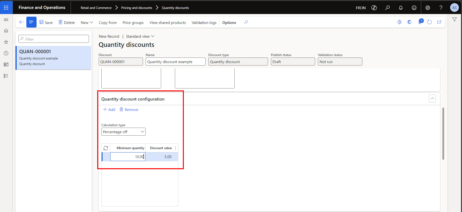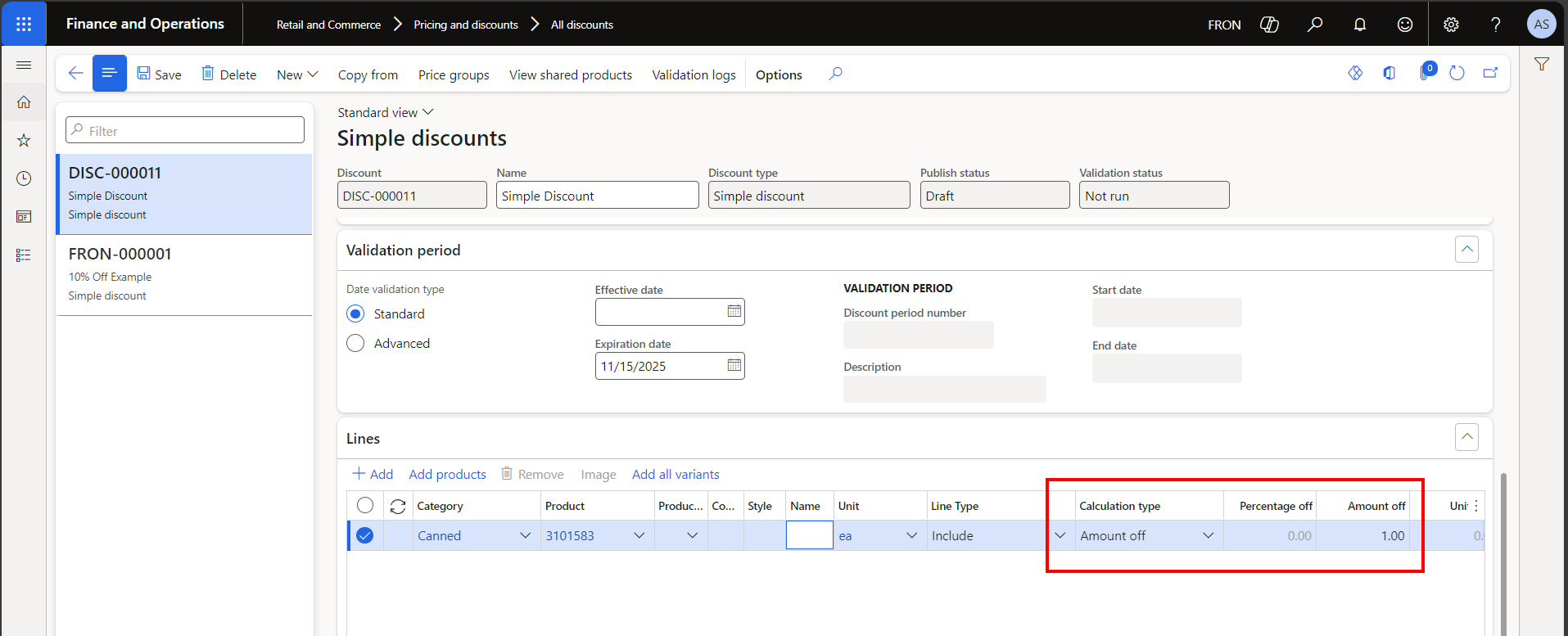 Retail discounts are set up according to type at Retail and commerce> Pricing and discounts