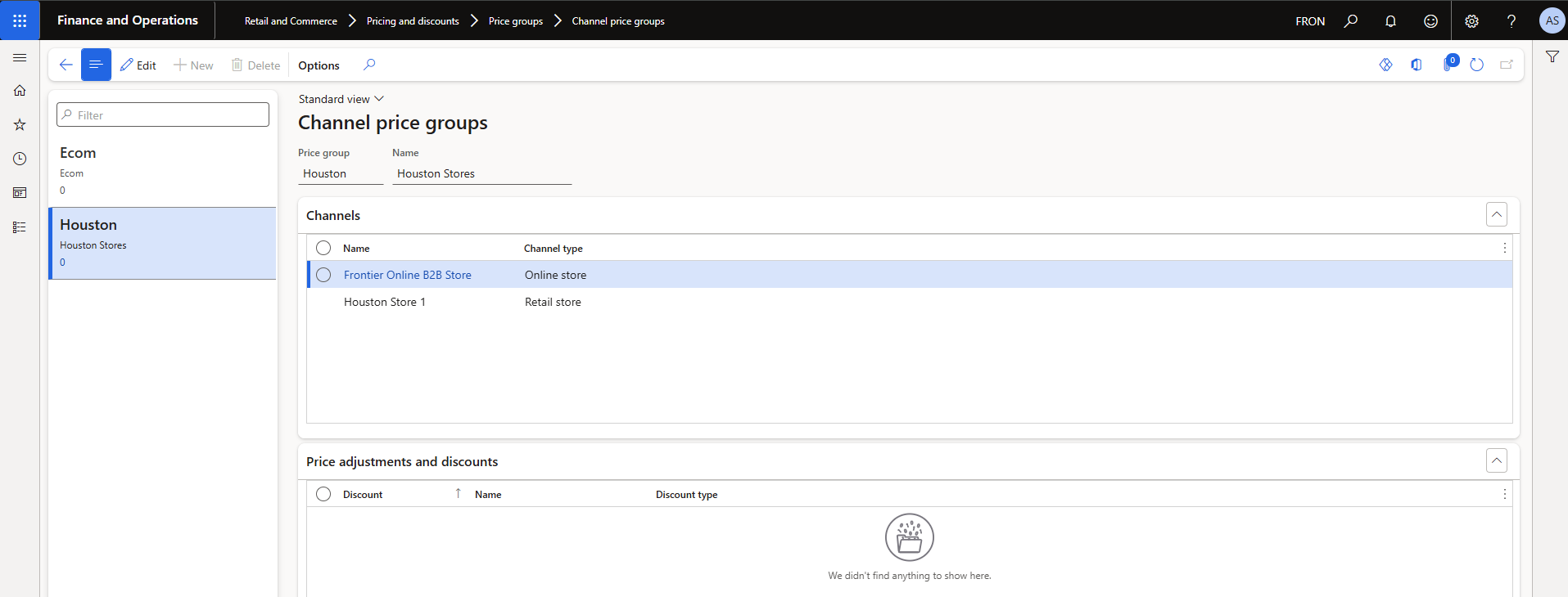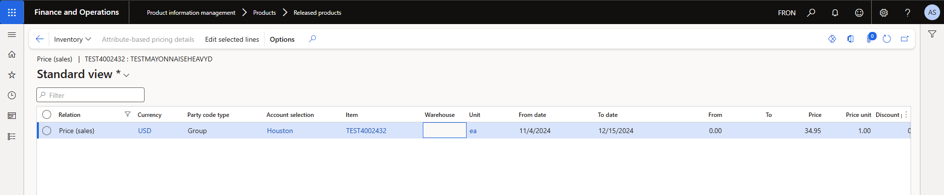 Select Party code type Group to Select a channel price group. Select Party code type Group for the item to price. Be sure to select unit of measure, dates and the price.
