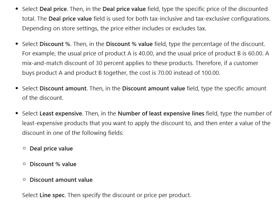 - When the value is Exclusive or Best price, only one discount can be applied to a transaction line.