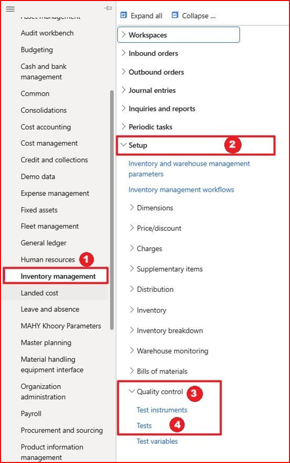 Go Path: Inventory Management à Setup à Quality Control à Quality Group