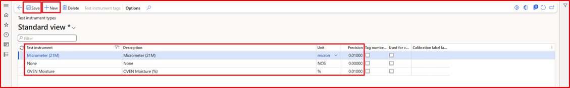 In Dynamics 365 Supply Chain Management, a Test Instrument is a tool or device used to perform quality tests on items during quality control processes. These instruments are part of the Quality Management module and help ensure that