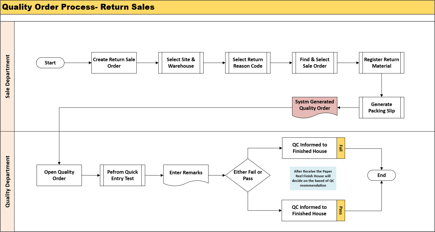 QC Department will perform QC Activity when the Sales department creates a return order for the returned from customer to keep in location.