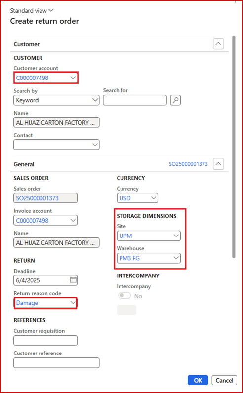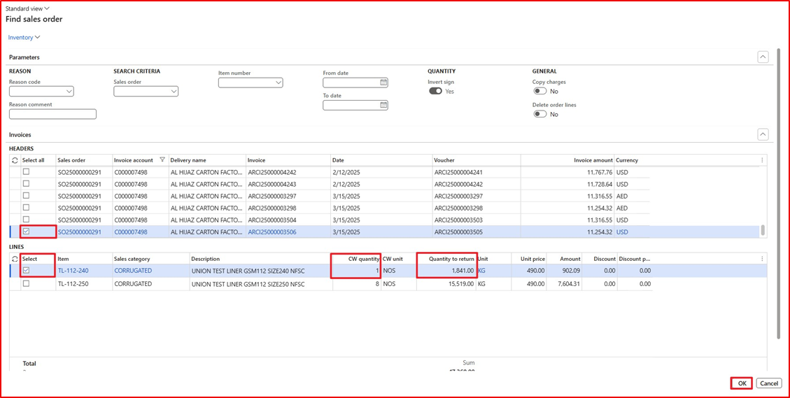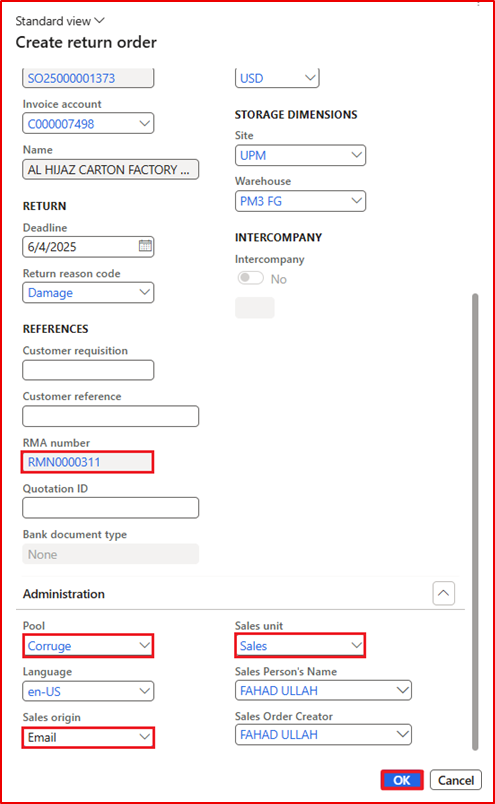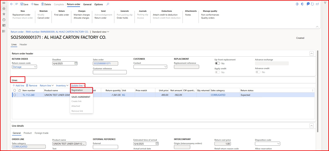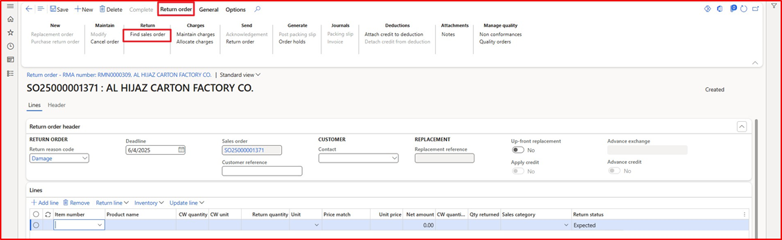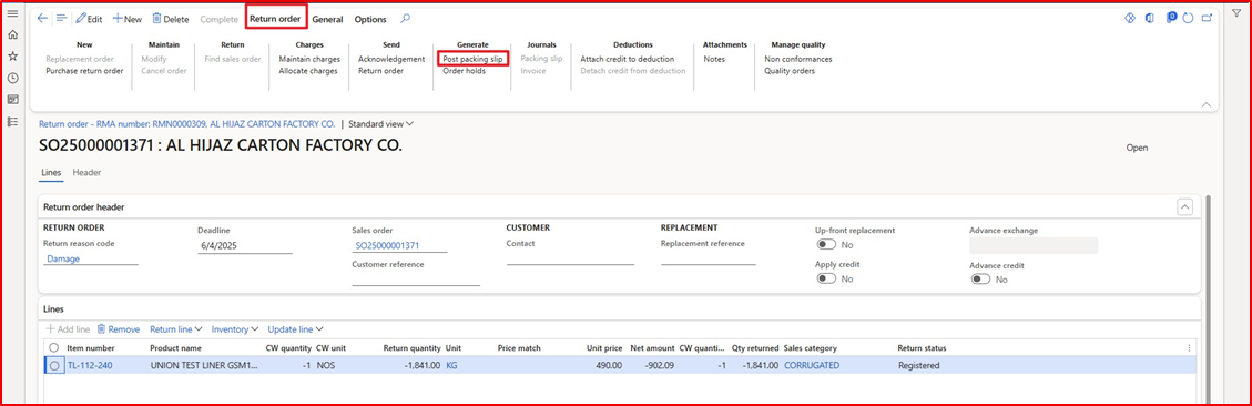*Important Note: While creating a return sale order, the sales department must ensure that any damaged paper reels received are recorded in these specified locations.