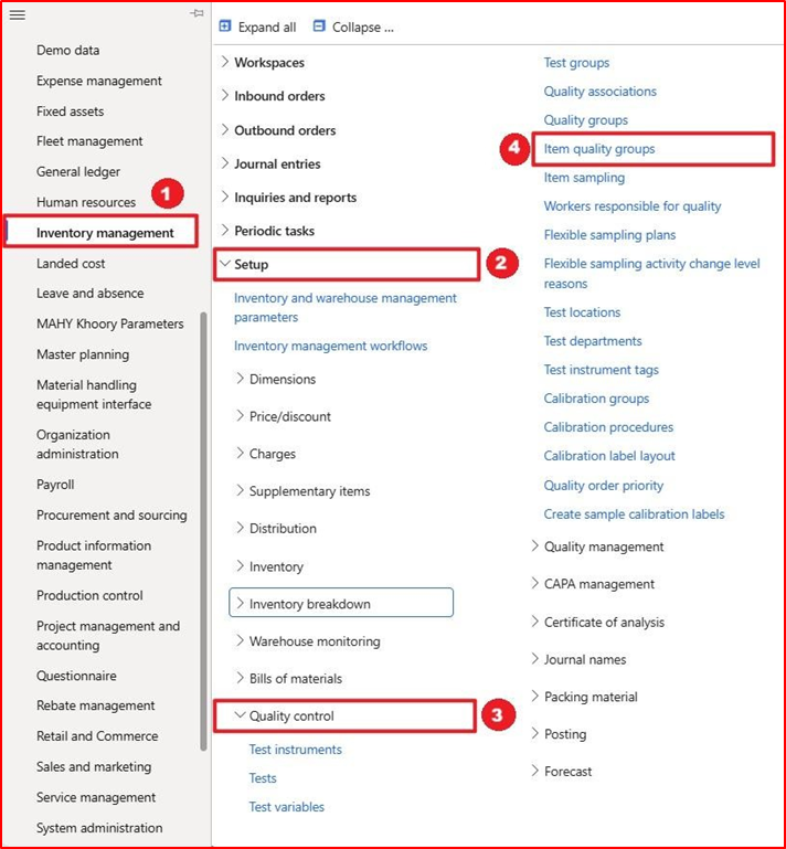 Go Path: Inventory Management à Setup à Quality Control à Item Quality Group