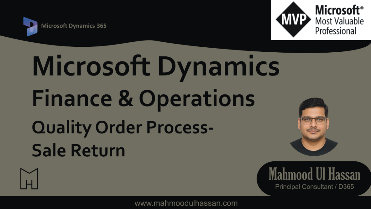 The Quality Order process for sales returns D365 Finance and Operations. This process ensures that returned goods are properly inspected and their quality is assessed before being restocked or processed further.